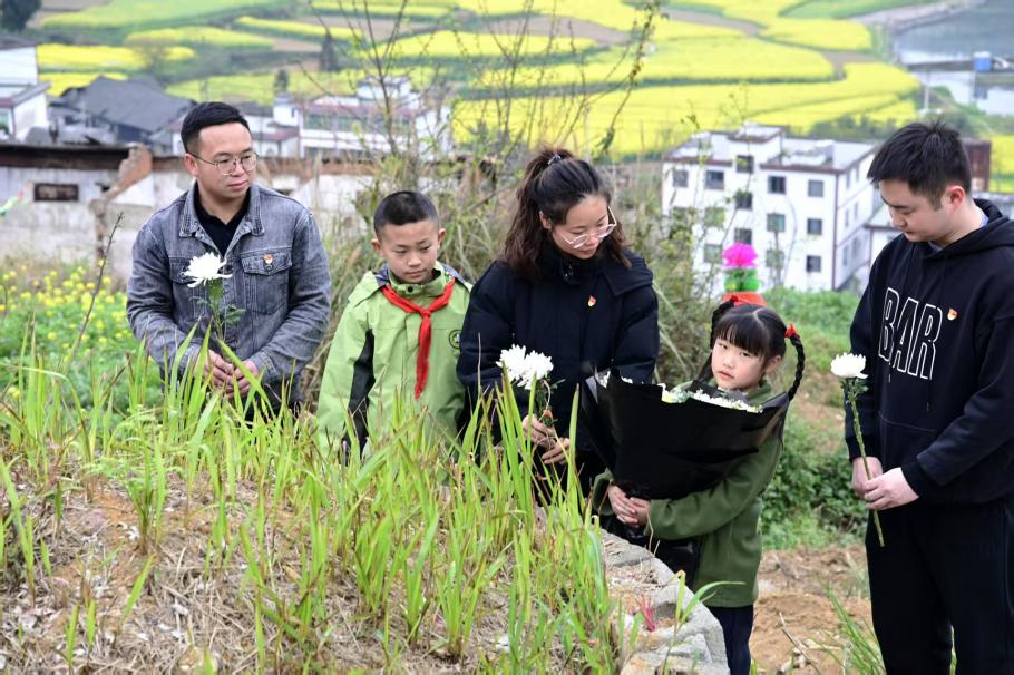 随后,党员们前往余永流同志墓前举行清明节祭扫仪式。他们肃立默哀、敬献鲜花,向这位在脱贫攻坚战斗中英勇献身的校友致以崇高的敬意和深切的缅怀。“余学长用生命诠释了共产党员的初心,他的精神永远激励着我们。”学生党员艾照碧表示,将继承遗志,在新时代征程中勇担使命。
