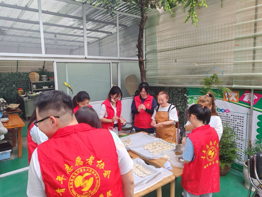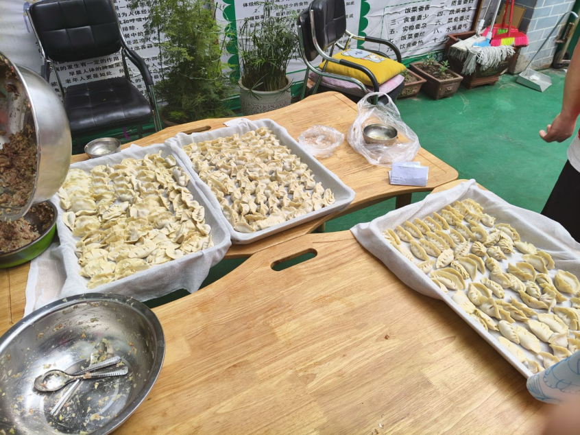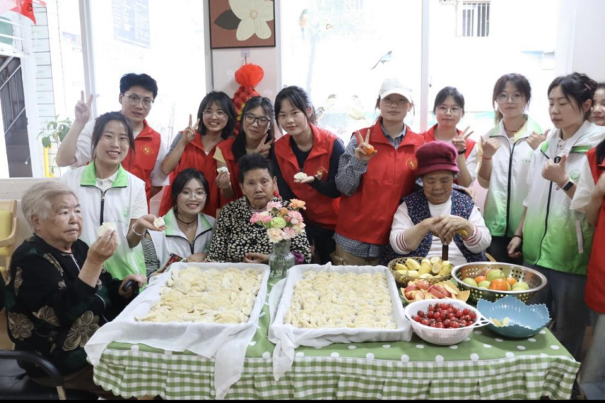 巧手包就爱心饺,笑语盛满敬老情。同学们围在一起,共同包饺子。大家分工协作,擀皮、剁馅儿,忙而不乱。在包饺子的过程中,同学们与老人亲切交谈,询问他们的生活情况,倾听他们的故事,欢声笑语不断。一个个形态各异的饺子,包进的不仅是美味的馅料,更是大家对老人的关爱与温暖。煮好的饺子端上餐桌,老人们品尝着大家共同的劳动成果,脸上洋溢着满足与幸福的笑容 。