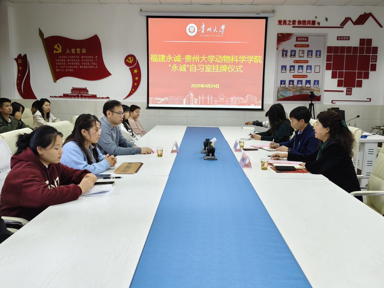 挂牌前,双方在崇学楼206会议室举行座谈,罗聃宁首先代表学院向福建永诚集团致以诚挚感谢。她指出,自习室的建成是校企合作的创新实践,不仅为研究生提供了优质的学习空间,更通过企业资源注入,为学院在动物科学领域的科研交流、人才培养搭建了新平台。