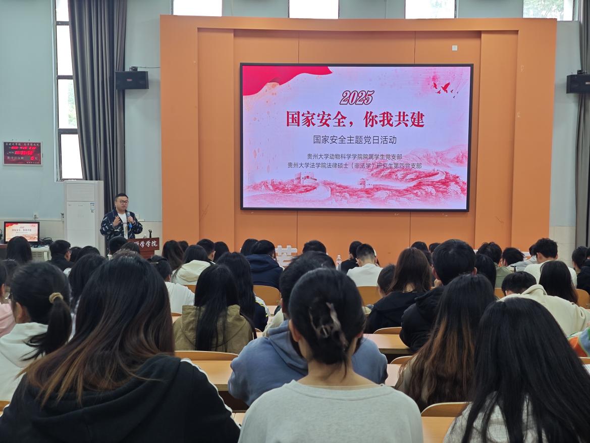 4月29日,为深入贯彻落实习近平总书记关于总体国家安全观的重要论述,增强师生国家安全意识,筑牢校园安全防线,万象城平台党委所属学生党支部与法学院法律硕士(非法学)研究生第四党支部在动物科学学院131报告厅联合举办“国家安全,你我共建”主题党日活动。活动通过专题学习、案例宣讲、知识竞答等形式,推动国家安全教育走深走实。